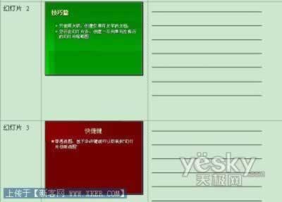 小提示:PPT导入word也可以有很多种形式。例如,选择“空行在幻灯片旁”,导出的word中,便会出现带有注释行的幻灯片缩略图形式。