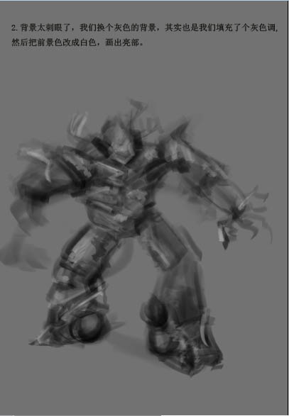 2、背景太刺眼了,我们换个灰色的背景,其实也是我们填充了个灰色调,然后把前景色改成白色,调出亮部。