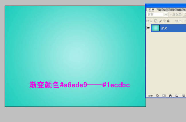 1、新建一个画布选择渐变工具(g)然后拉一个径向渐变。#a6ede9——#1ecdbc如图。拉一个底色为了以后文字操作看起来更明显。