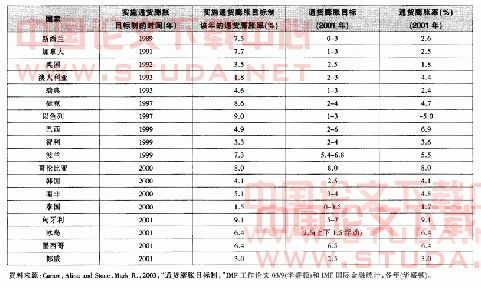 [@图头@]表2:实行通货膨胀目标制国家的通货膨胀目标(2001年)