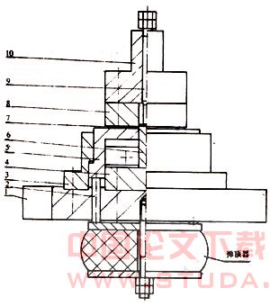 1.上模座 2.顶杆 3.卸料圈固定座 4.凸模座  5.卸料圈