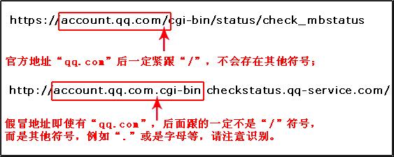 若您已经打开相关链接,请查看地址栏的链接,腾讯QQ密保的官方网站为:https://account.qq.com/,腾讯官方网站域名后一定紧跟着“/”,例如: